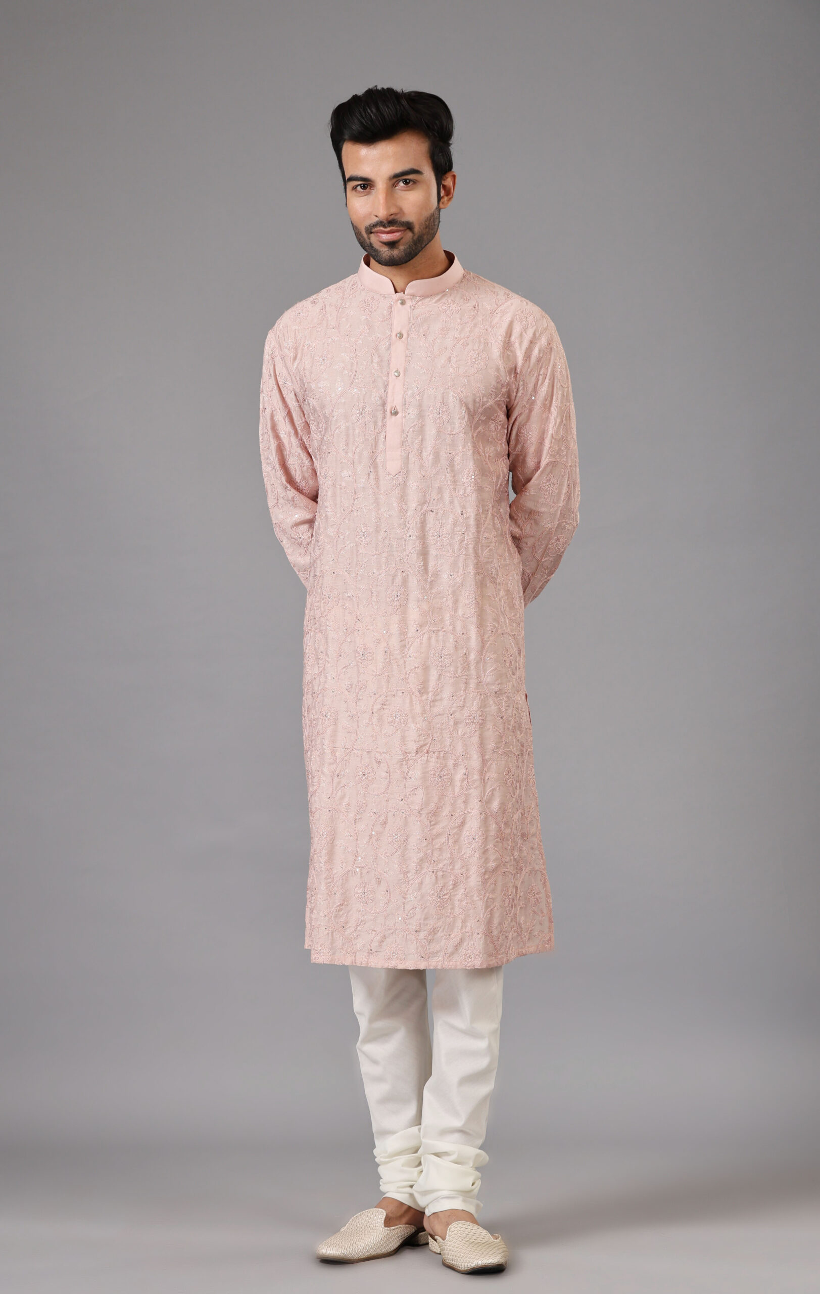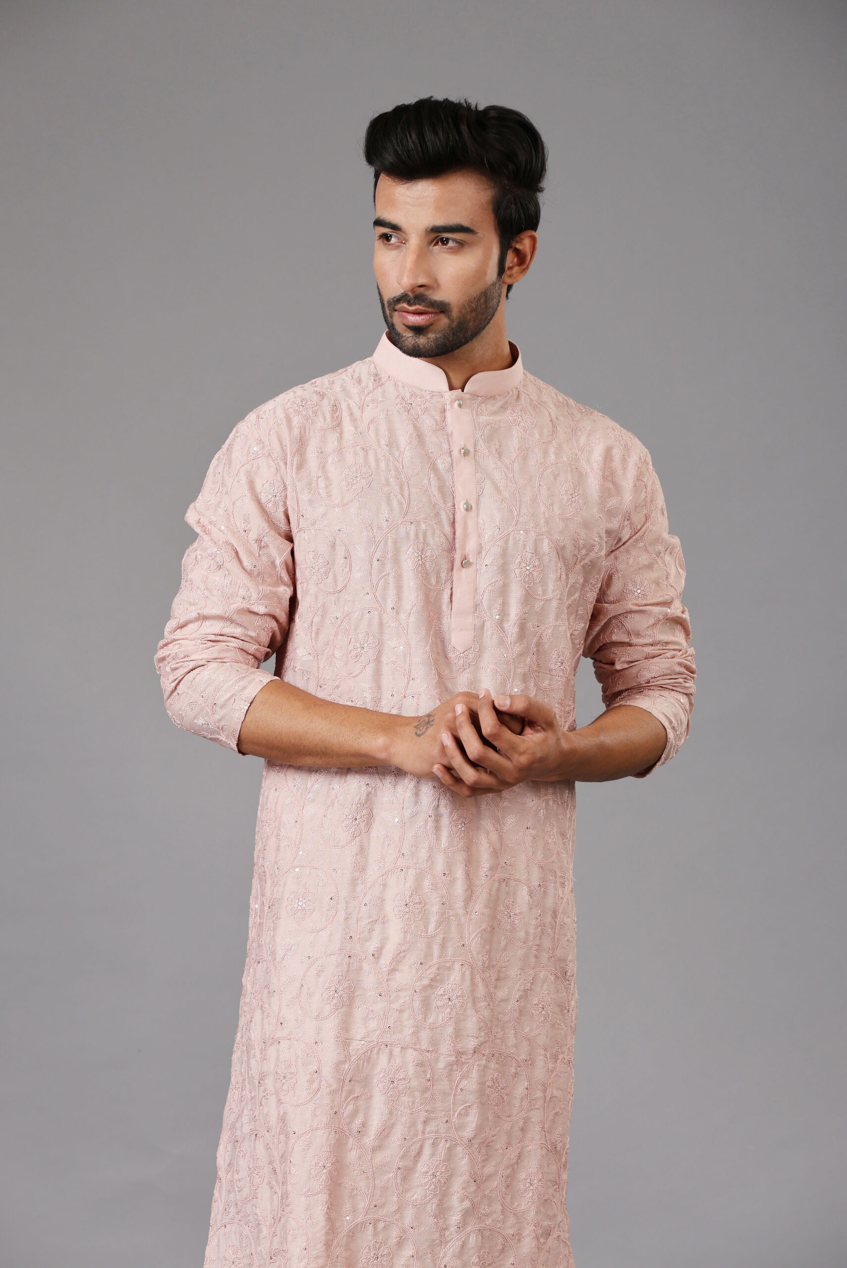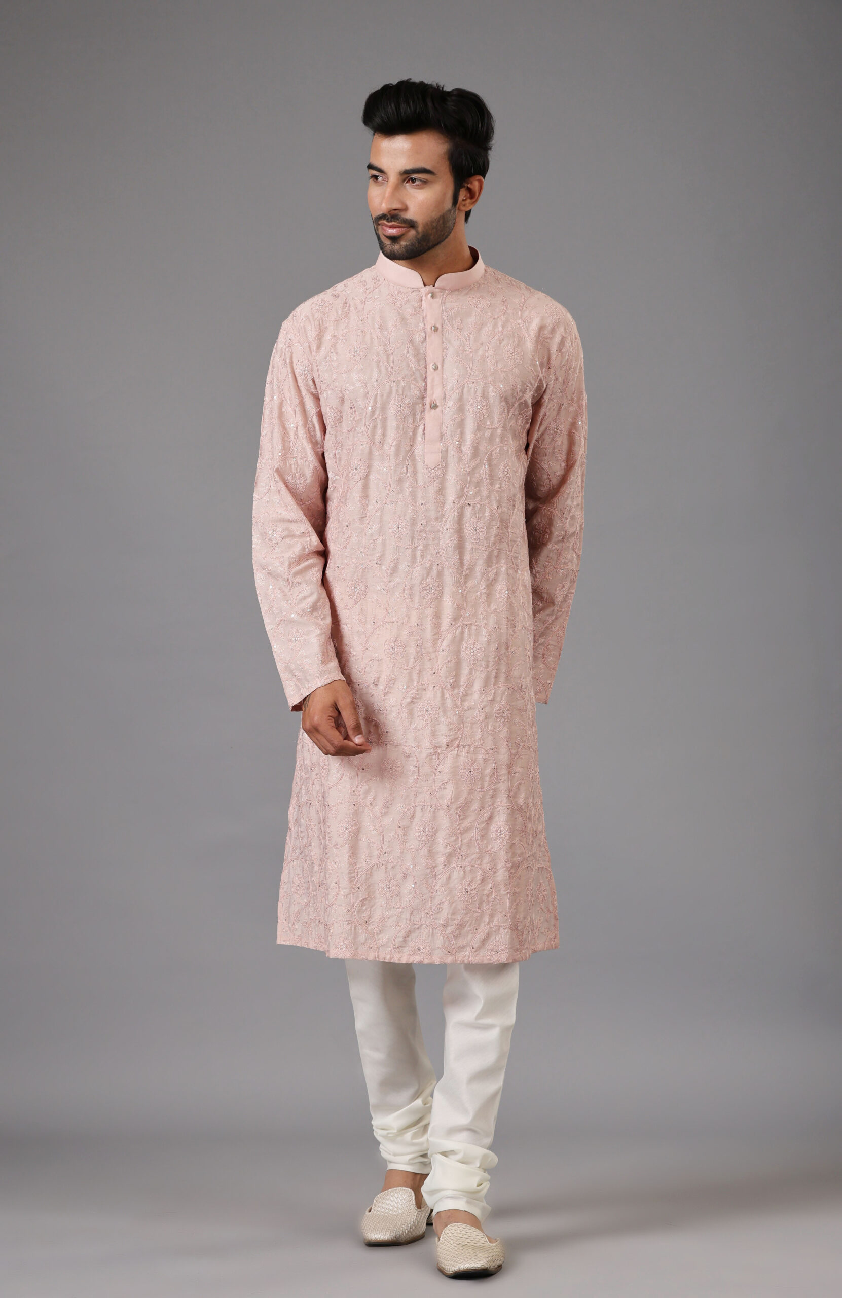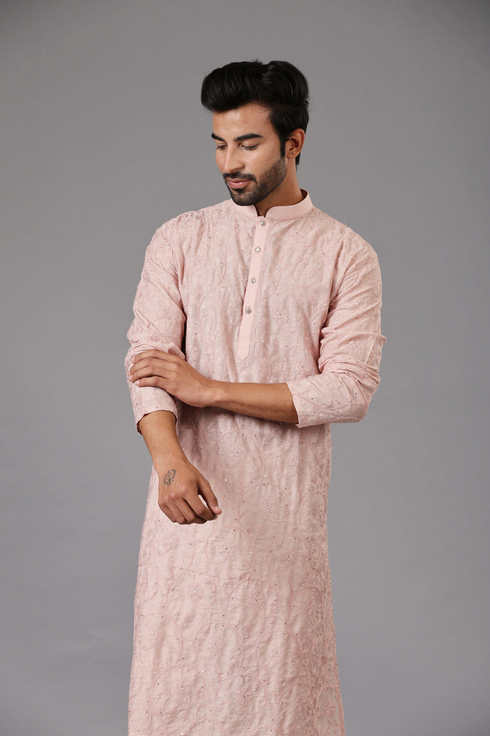 Baby Pink fully embroidered Kurta Set with Tone-to-Tone Thread Embroidery and Sequins Work is a perfect choice for festive & wedding occasions.