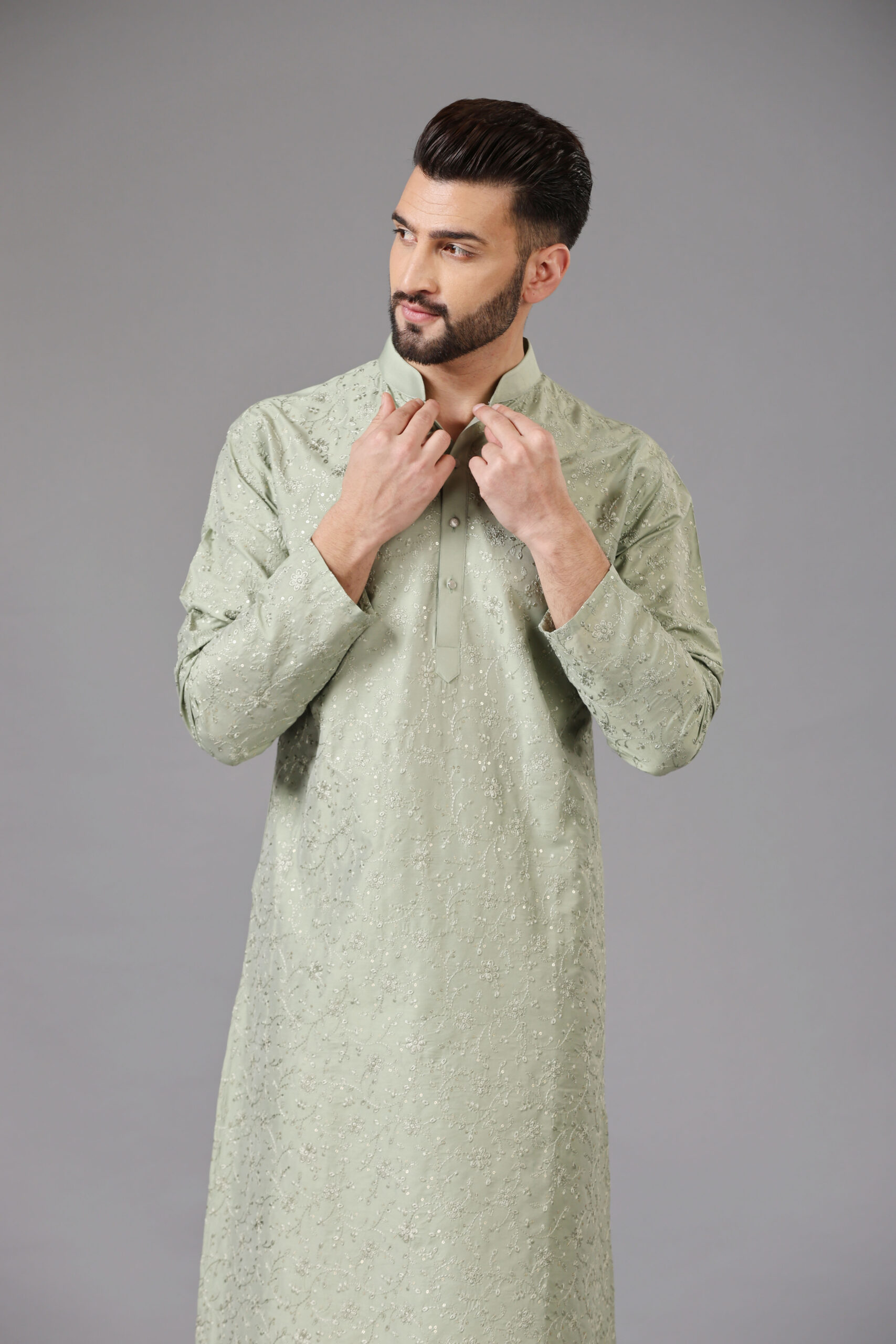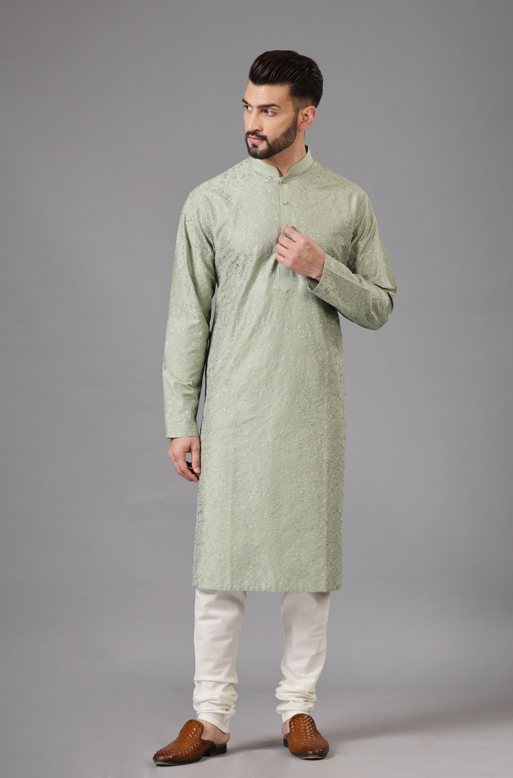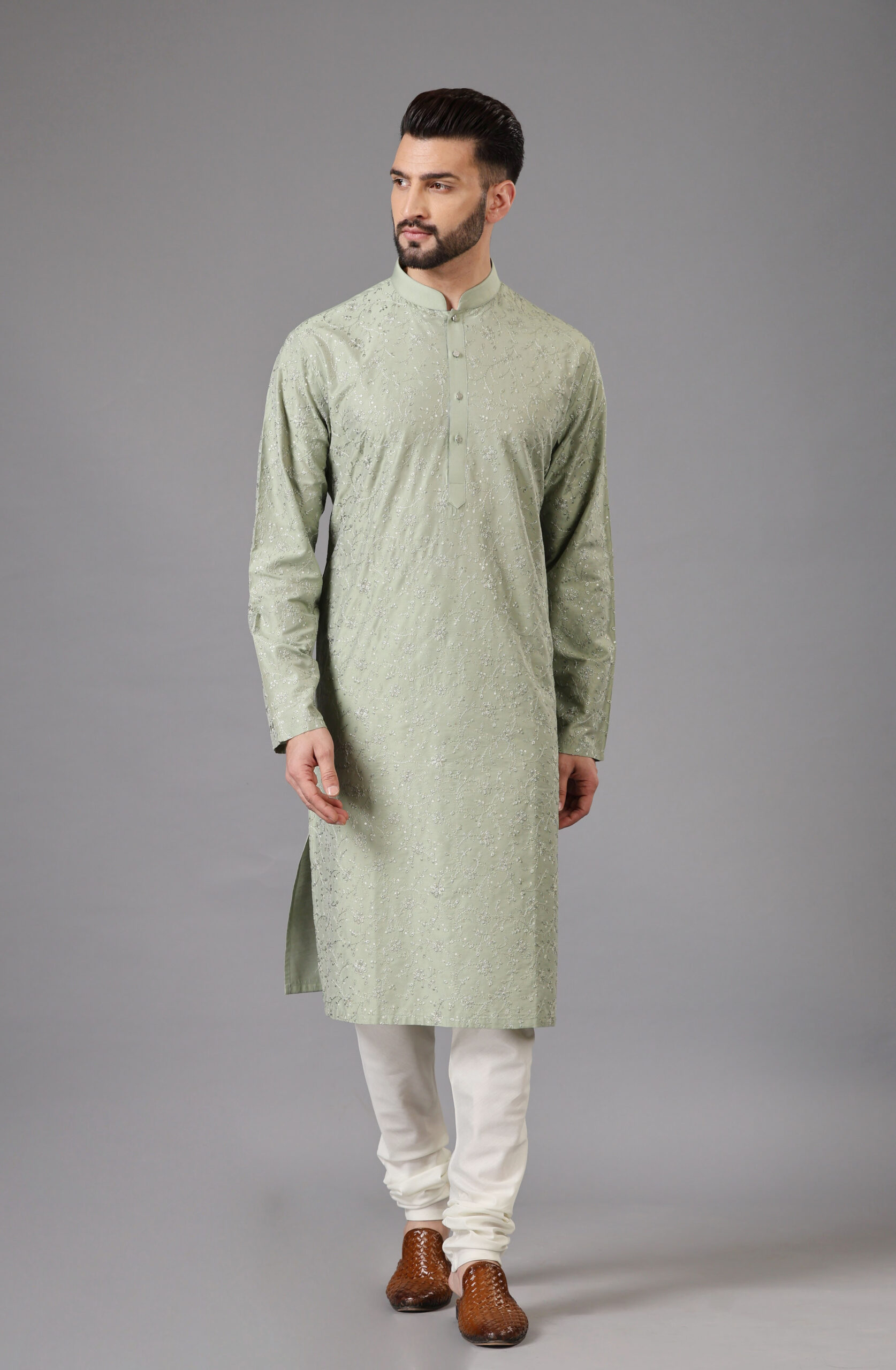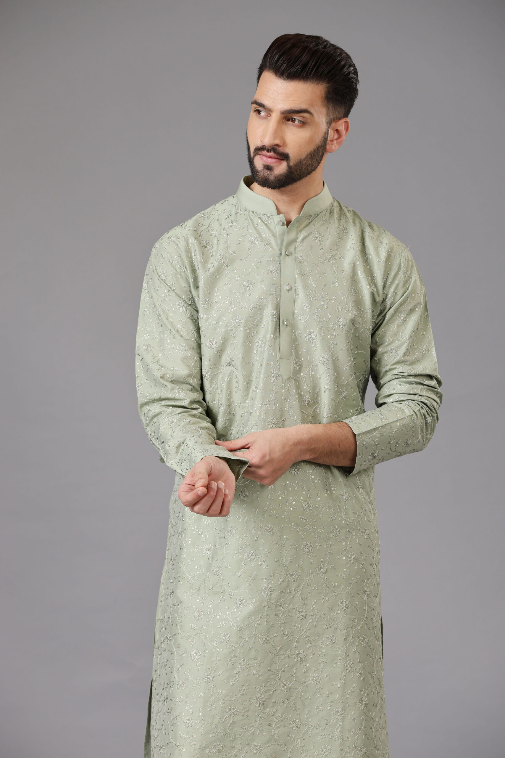 Pista Green Kurta Set with intricate Tone-to-Tone Thread Embroidery With Sequins Work all over.