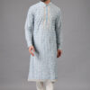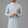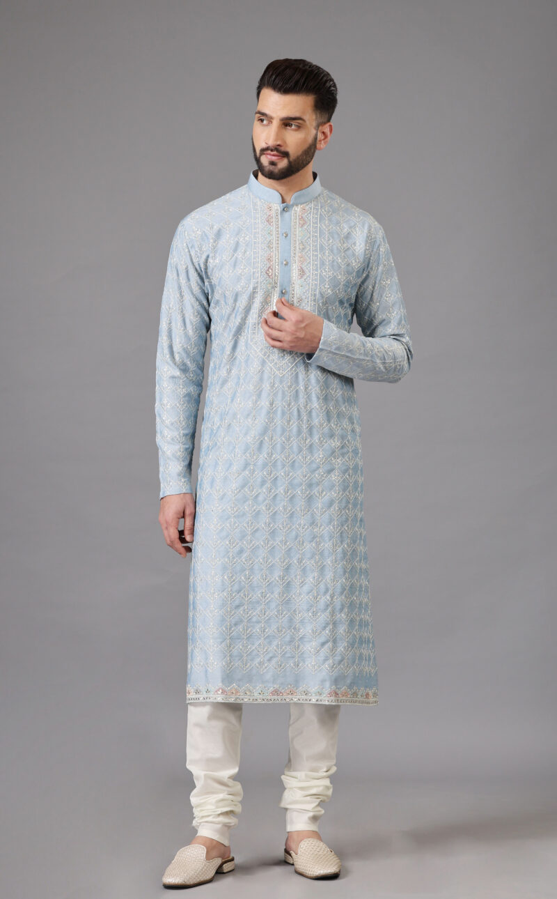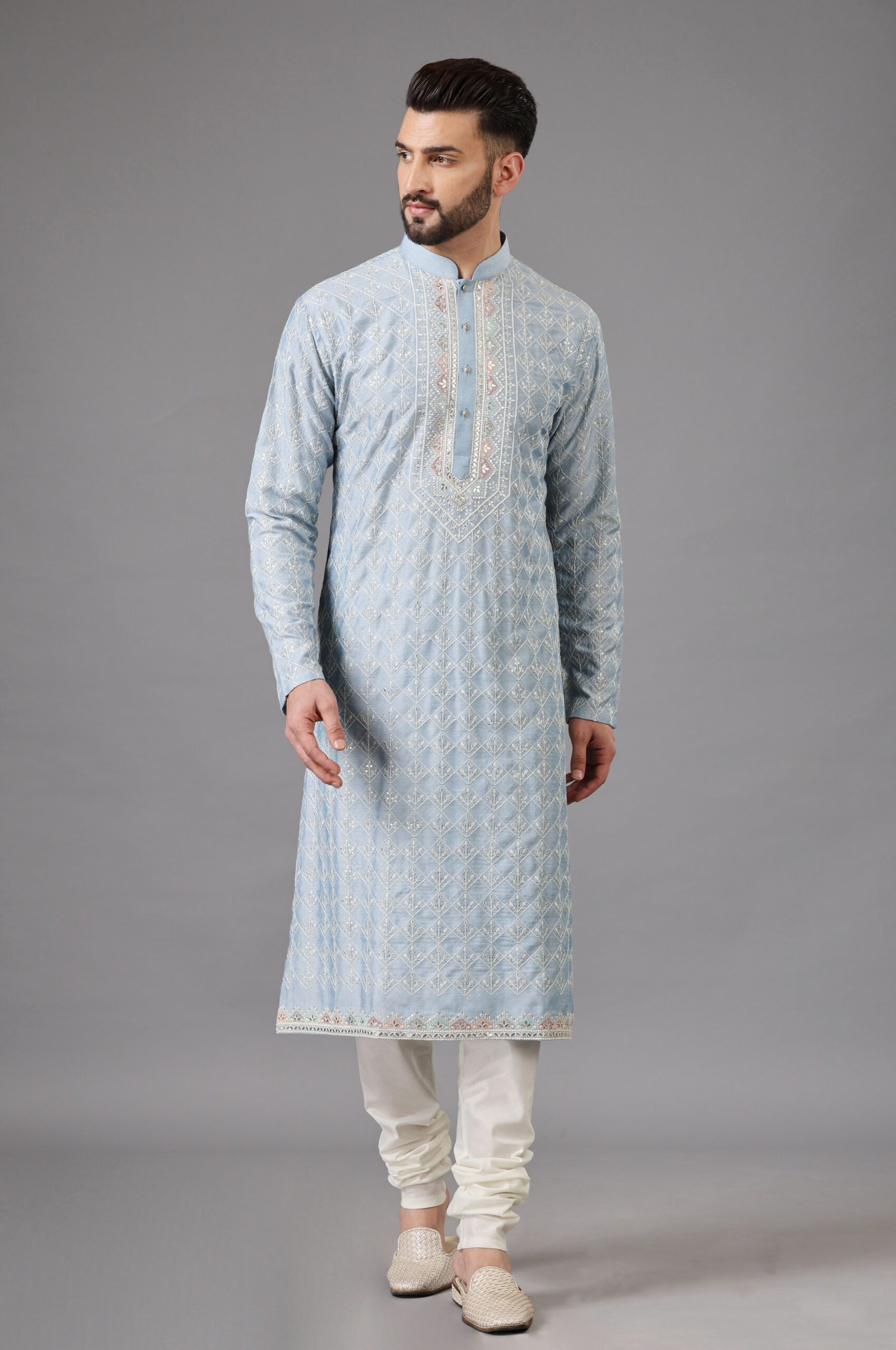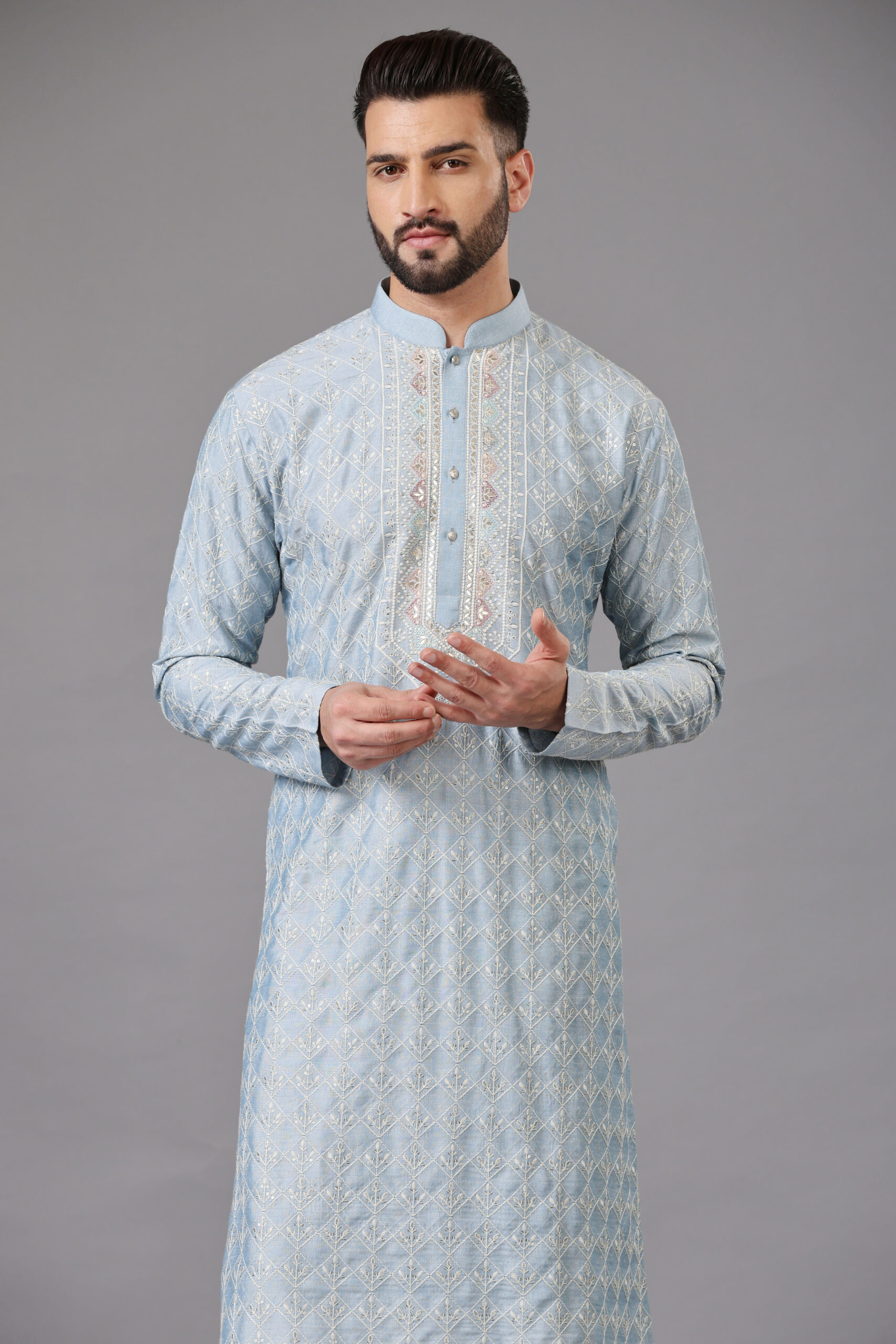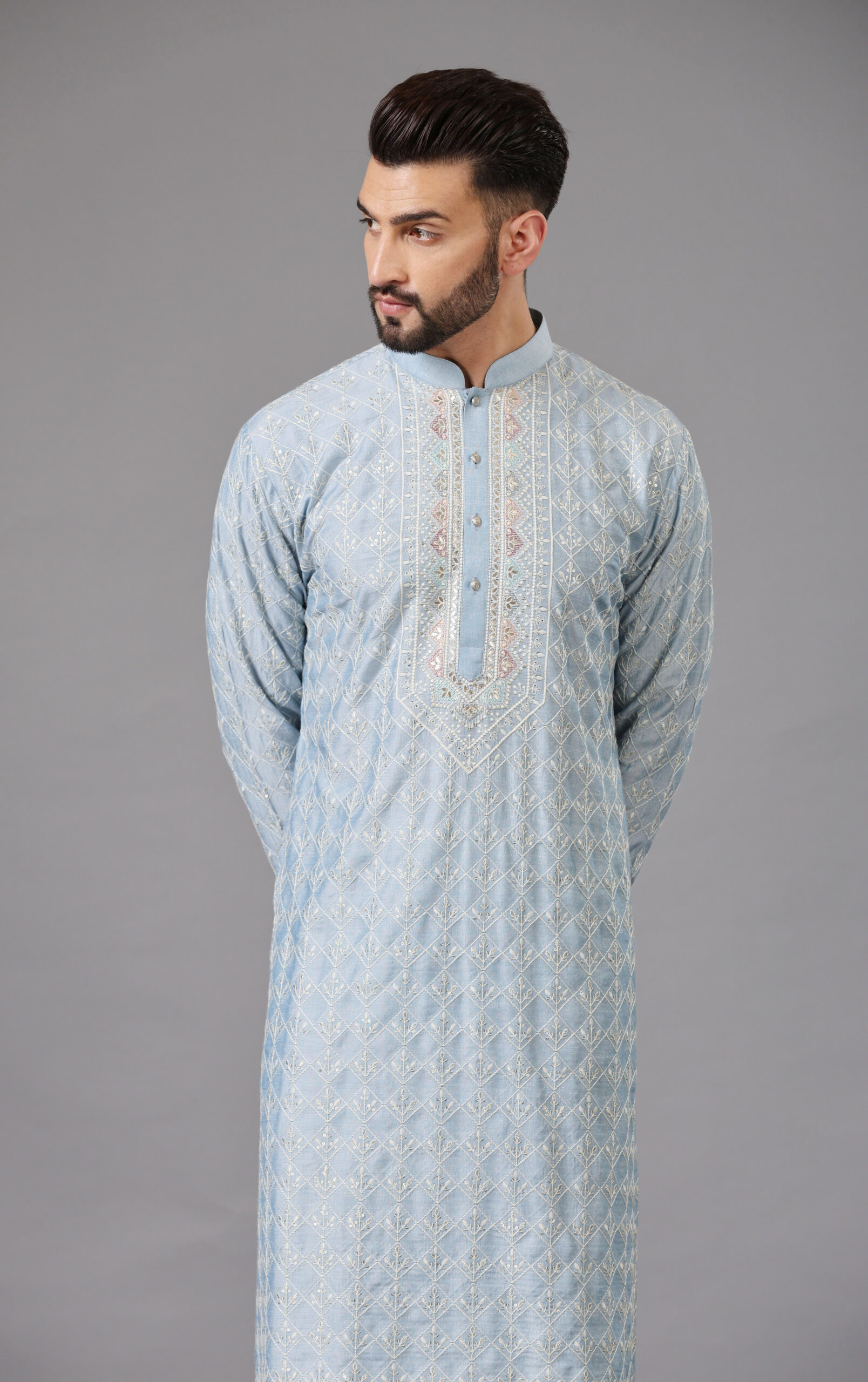 Blue Kurta Set with intricate Sequins and Off-White Thread Embroidery all over