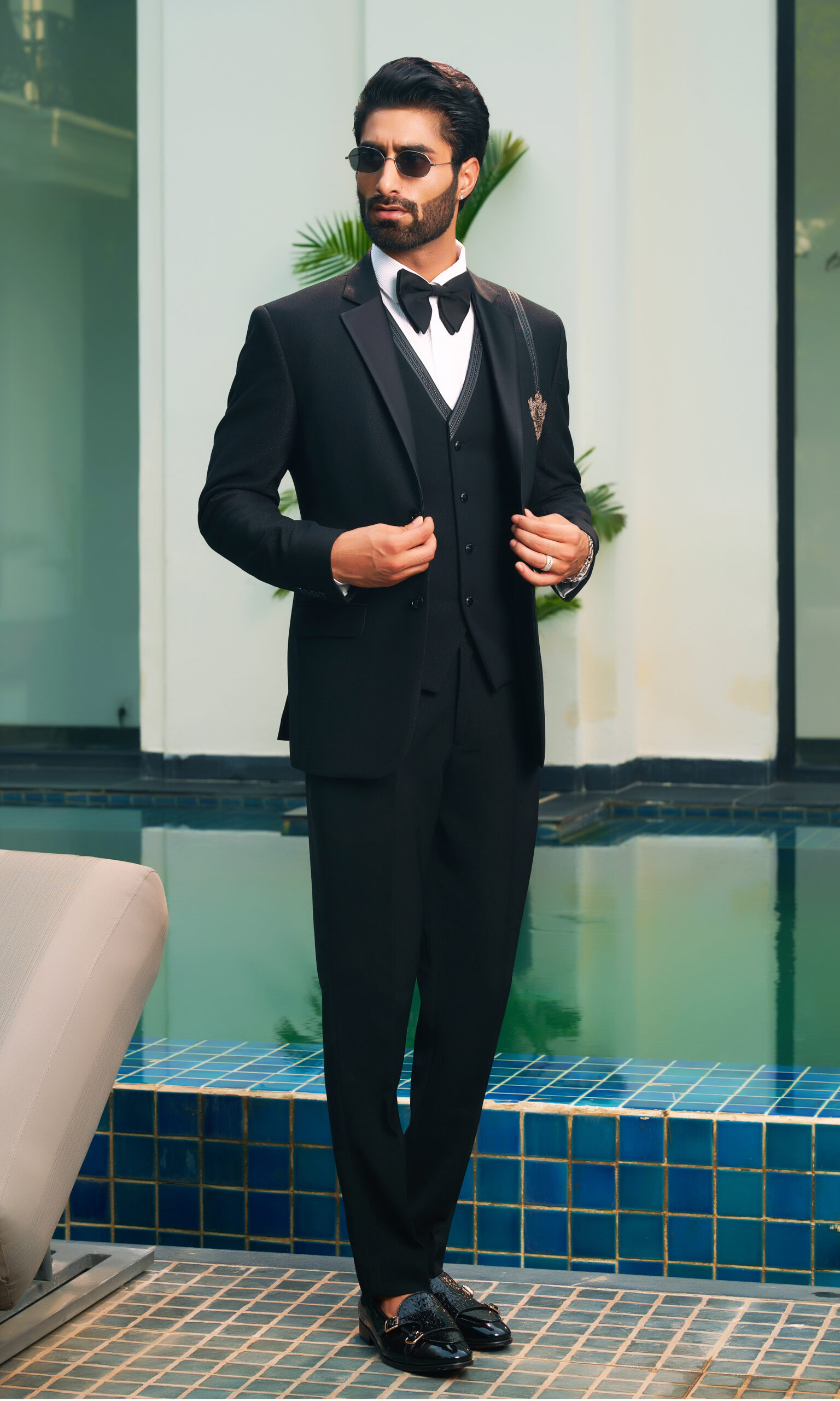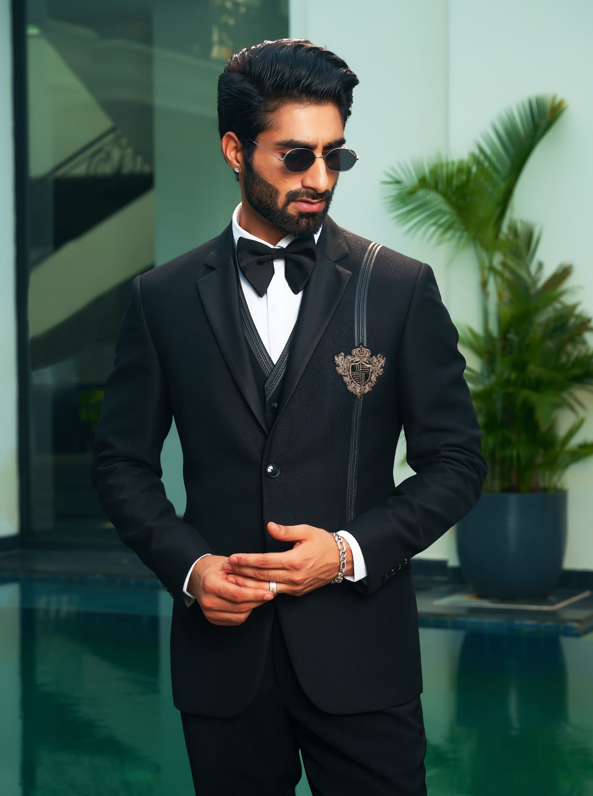 Showcase your impeccable taste with this Black Embroidered Suit with Patch, a masterpiece that blends timeless tradition with modern flair. The rich black fabric is beautifully enhanced by detailed embroidery and subtle patch accents, offering a royal and distinguished appeal. Expertly tailored for a flawless fit, this designer suit promises comfort, class, and confidence. Perfect for weddings, receptions, or festive evenings, it’s an ideal choice for the man who values elegance in every detail