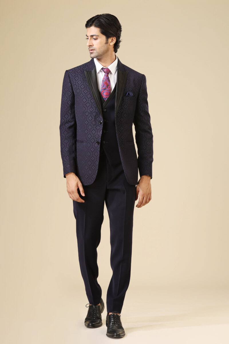 Perfect for the discerning gentleman, our Navy blue Textured Men’s Jacquard Wedding Suit is tailored to elevate any wedding ensemble. With its sophisticated texture and timeless appeal, this suit is ideal for grooms looking to make a memorable statement on their big day.