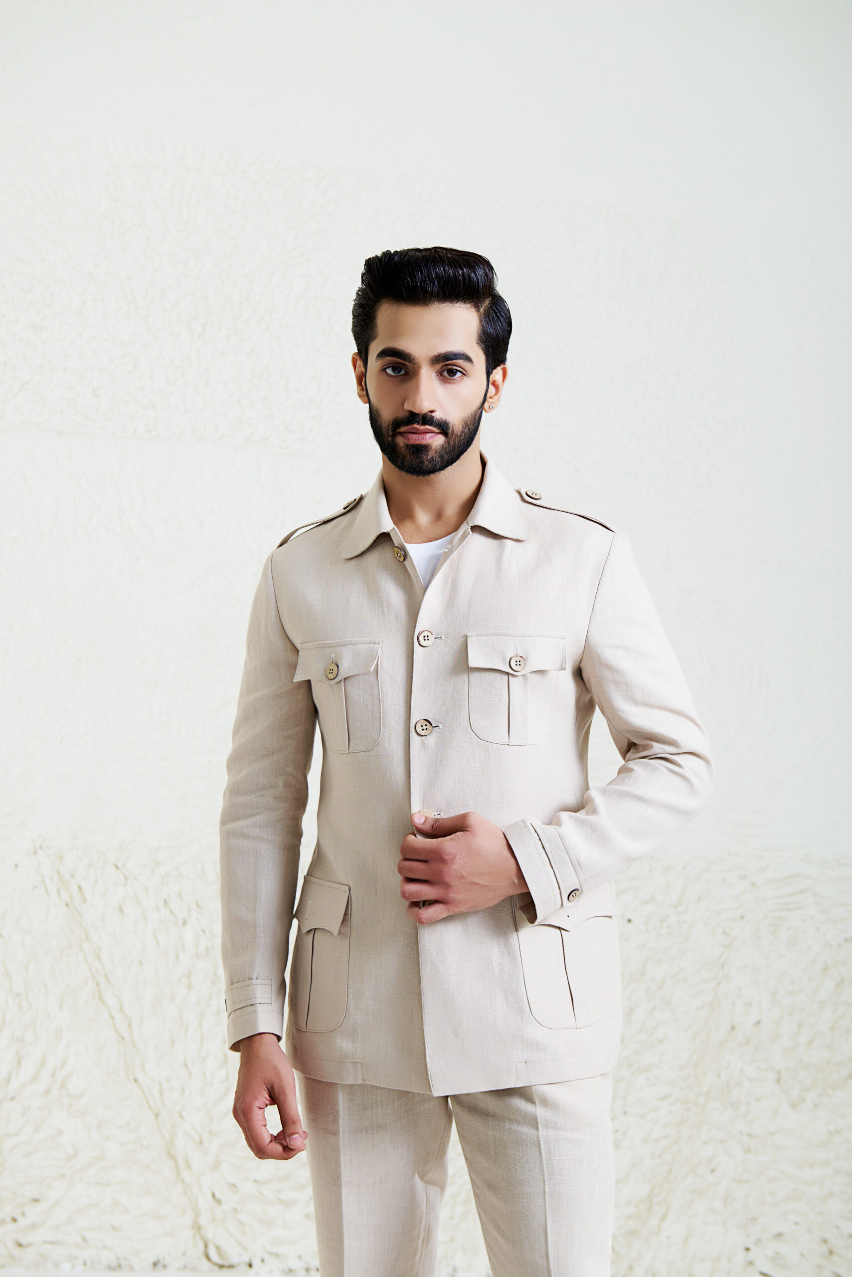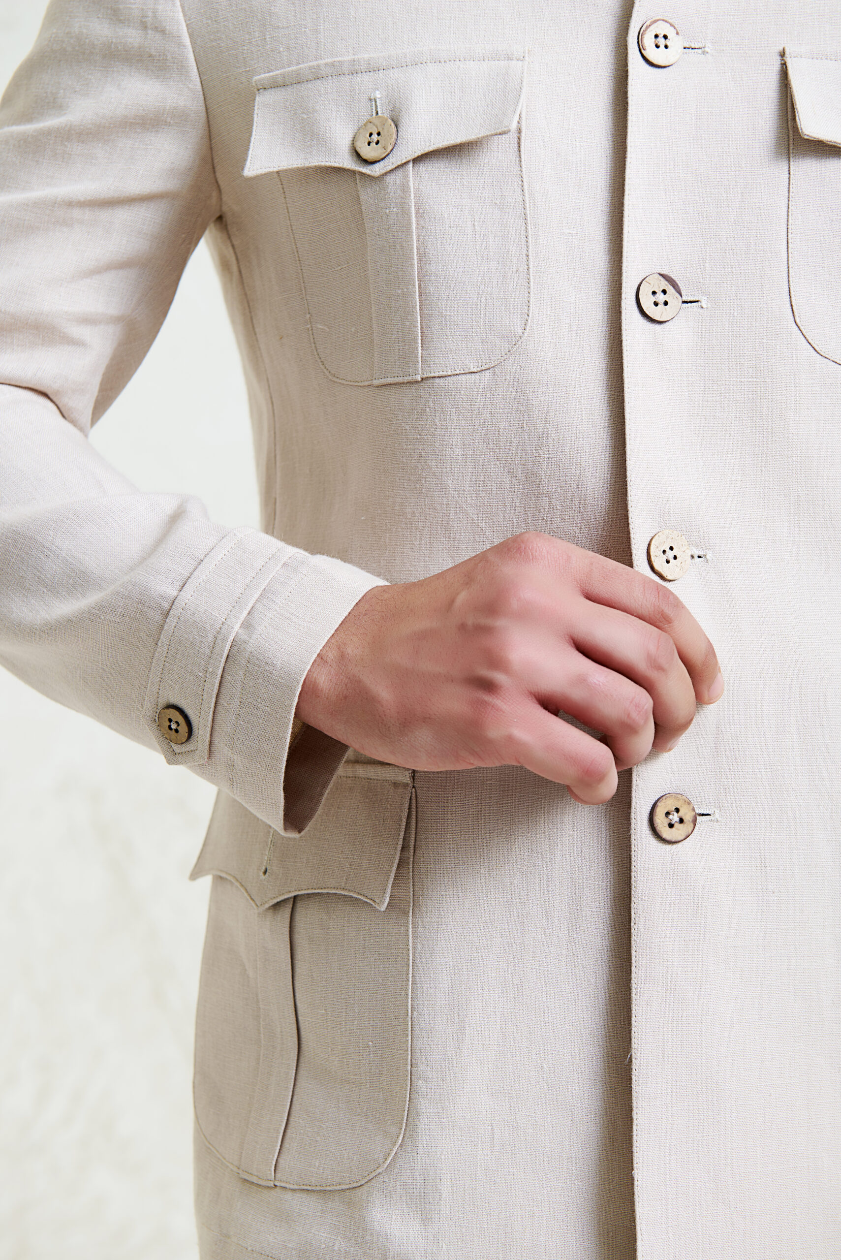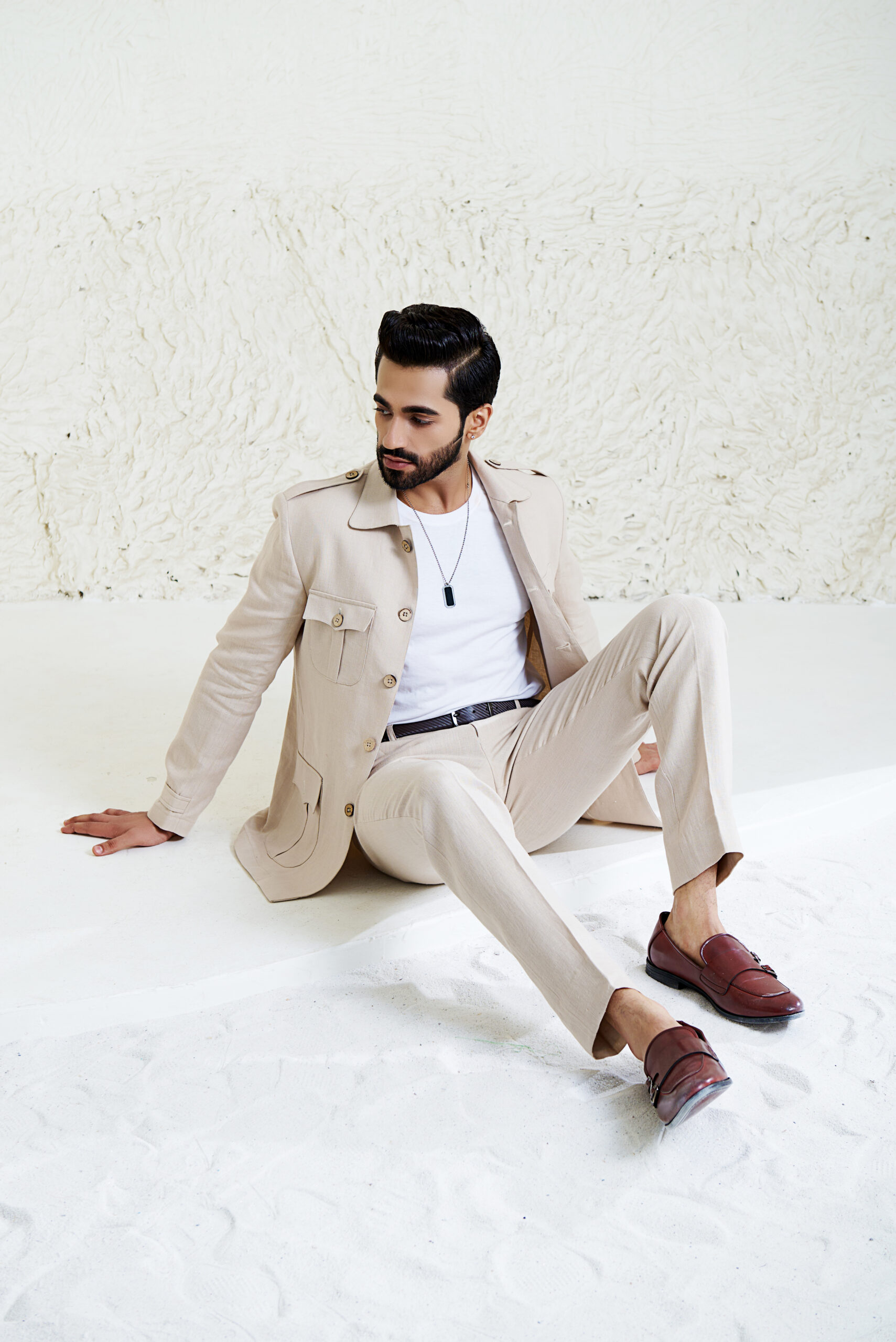 The Beige Linen Co-ord Set is a style statement for someone who isn’t afraid to stand apart. Enhance your look effortlessly with chic shoulder and sleeve flap details, adding a touch of sophistication to your ensemble. Crafted for comfort yet designed for elegance in pure linen.