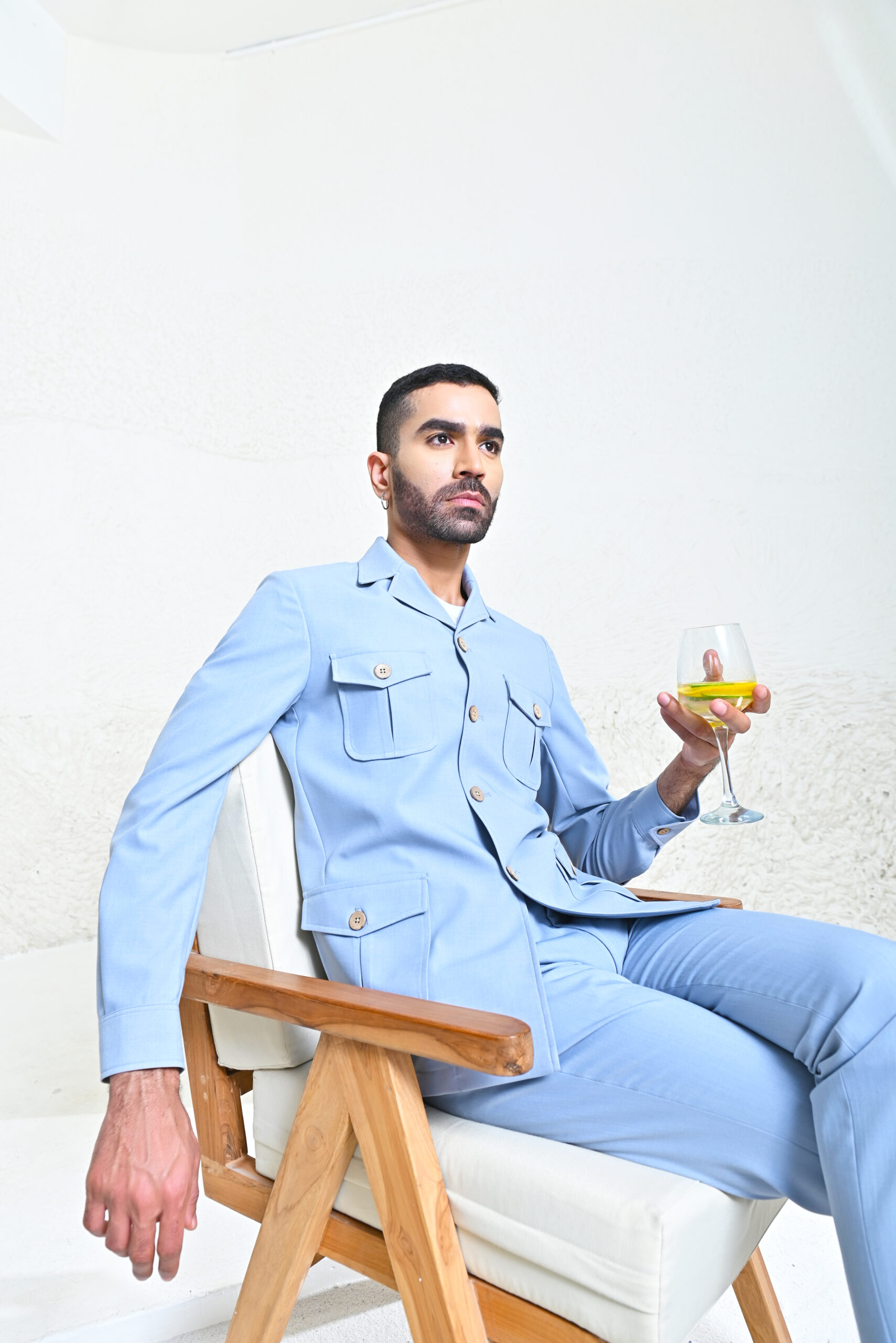 The Sky Blue Men’s Co-ord set is a statement piece that is guaranteed to make heads turn, the ensemble encompasses effortless class and comfort by using the finest linen blends meticulously crafted by expert craftsmen. Finished with wooden buttons and a matching belt this ensemble will surely take your wardrobe game up a notch.
